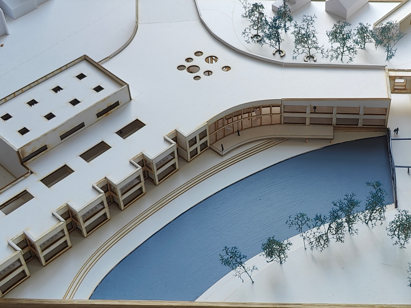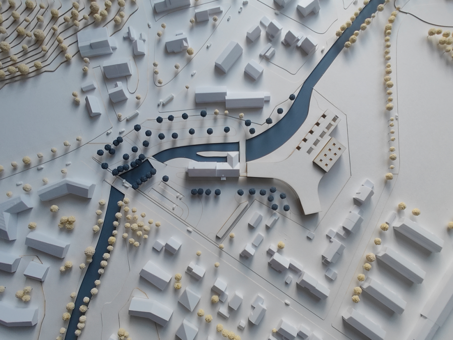 Meine Masterarbeit beschäftigte sich mit dem Gelände der alten Holzschleiferei in Hebertshausen. Einem geschichtsträchtigen, aber seit Jahren leerstehenden Grundstück im Ortskern von Hebertshausen. Im Rahmen meiner Arbeit habe ich dieses zu einem Schulzentrum für handwerkliche Berufe entwickelt und den Bewohnern zusätzlich einen Park mit dem renaturierten Mühlbach geschaffen. Durch die enge Zusammenarbeit mit den Behörden der Gemeinde Hebertshausen, konnte ich meine Arbeit auch öffentlich der Bauamtsleitung und dem Bürgermeister präsentieren.