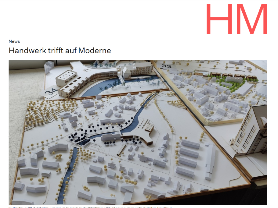Abriss und Neubau: So das Schicksal vieler alter Häuser, denn eine Sanierung ist wirtschaftlich häufig unrentabel. HM-Student Tobias Haase hat in seiner Masterarbeit an der Fakultät für Architektur einen Bauplan für die alte Holzschleiferei in Hebertshausen entworfen – ein geschichtsträchtiger Bau, fünf Minuten von seinem Elternhaus entfernt. Seit den 1960er Jahren steht das mehrstöckige Gebäude leer. In Haases Bauplan könnte daraus eine Berufsschule werden inklusive ansprechender Parklandschaft für die Gemeinde.